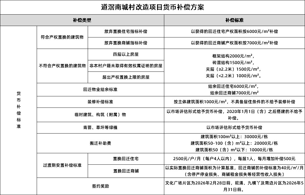 道滘镇南城村坭涌、九横丫、南边片区城中村拆迁补偿安置方案