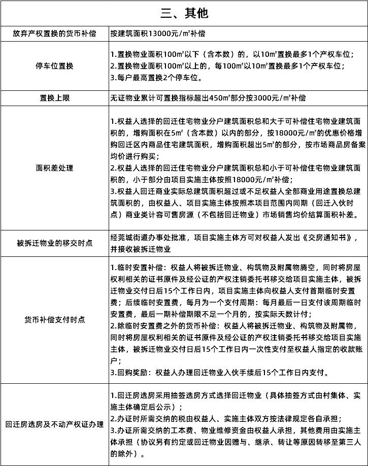 发布于 2024.06.15莞城街道圳头城中村改造项目私有物业补偿方案备注:(一)本拆迁补偿方案仅适用于莞城街道圳头城中村改造项目内涉及的私有物业拆迁补偿;(二)本方案未尽事宜由东莞市莞城街道办事处另行议定。附件无其他跳转原文