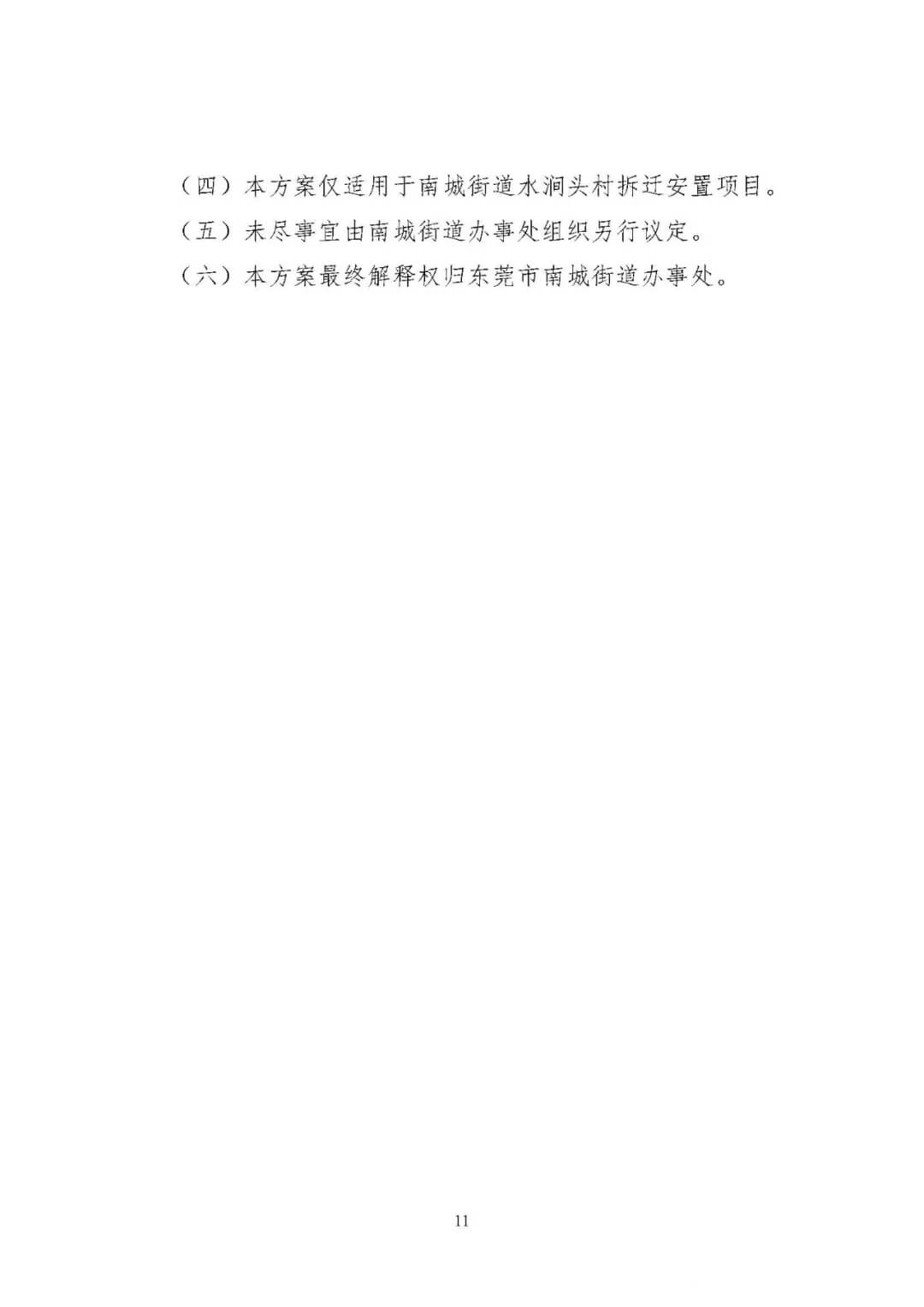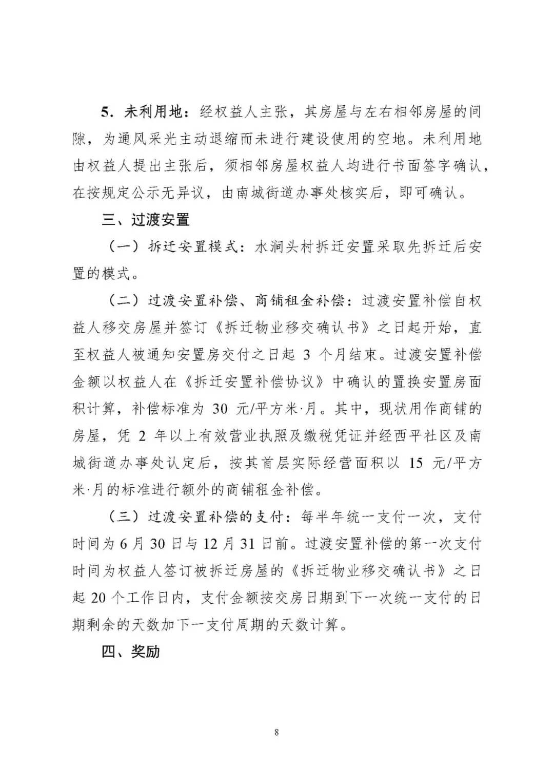 南城街道水涧头村私人物业拆迁安置补偿方案